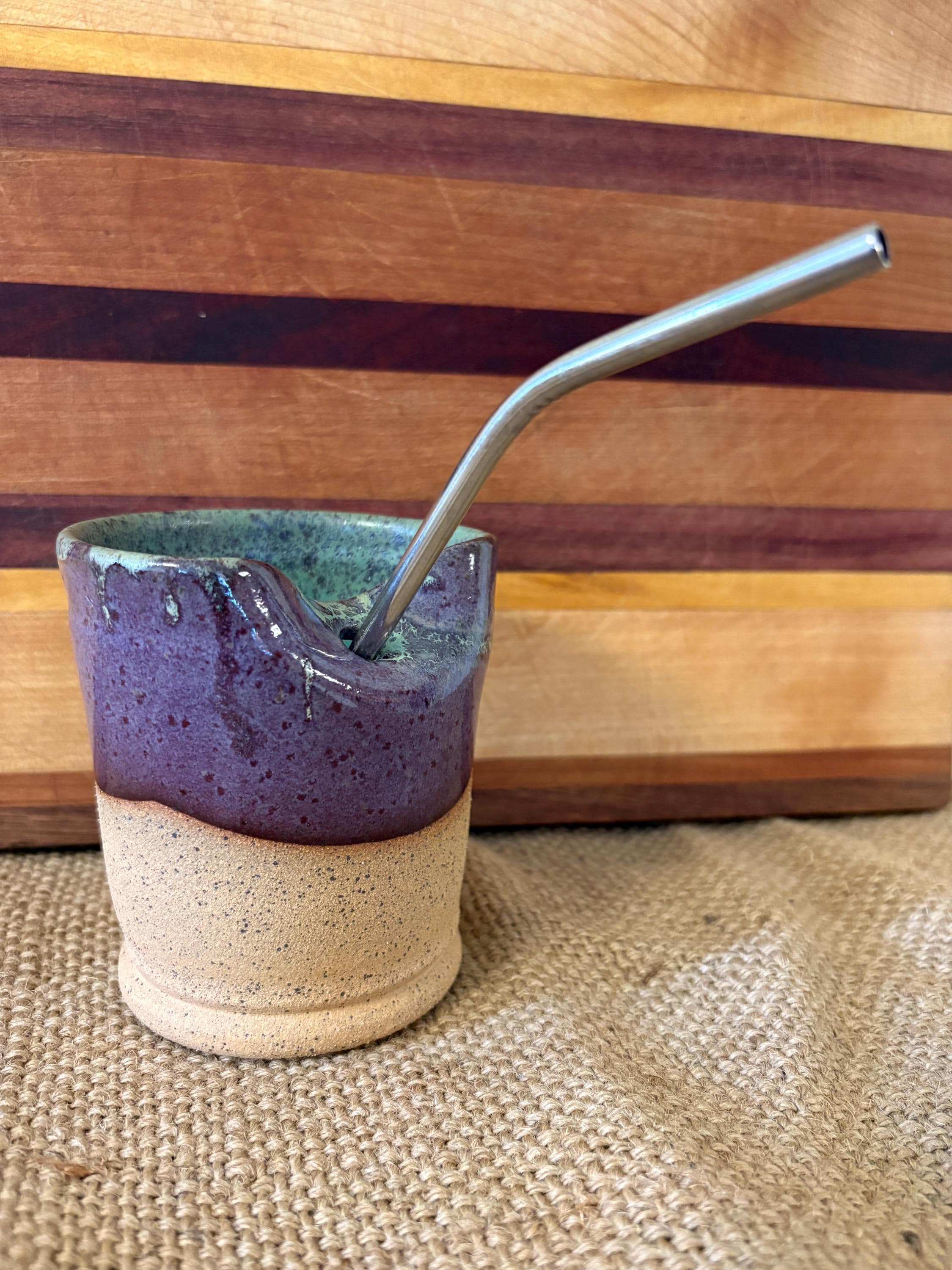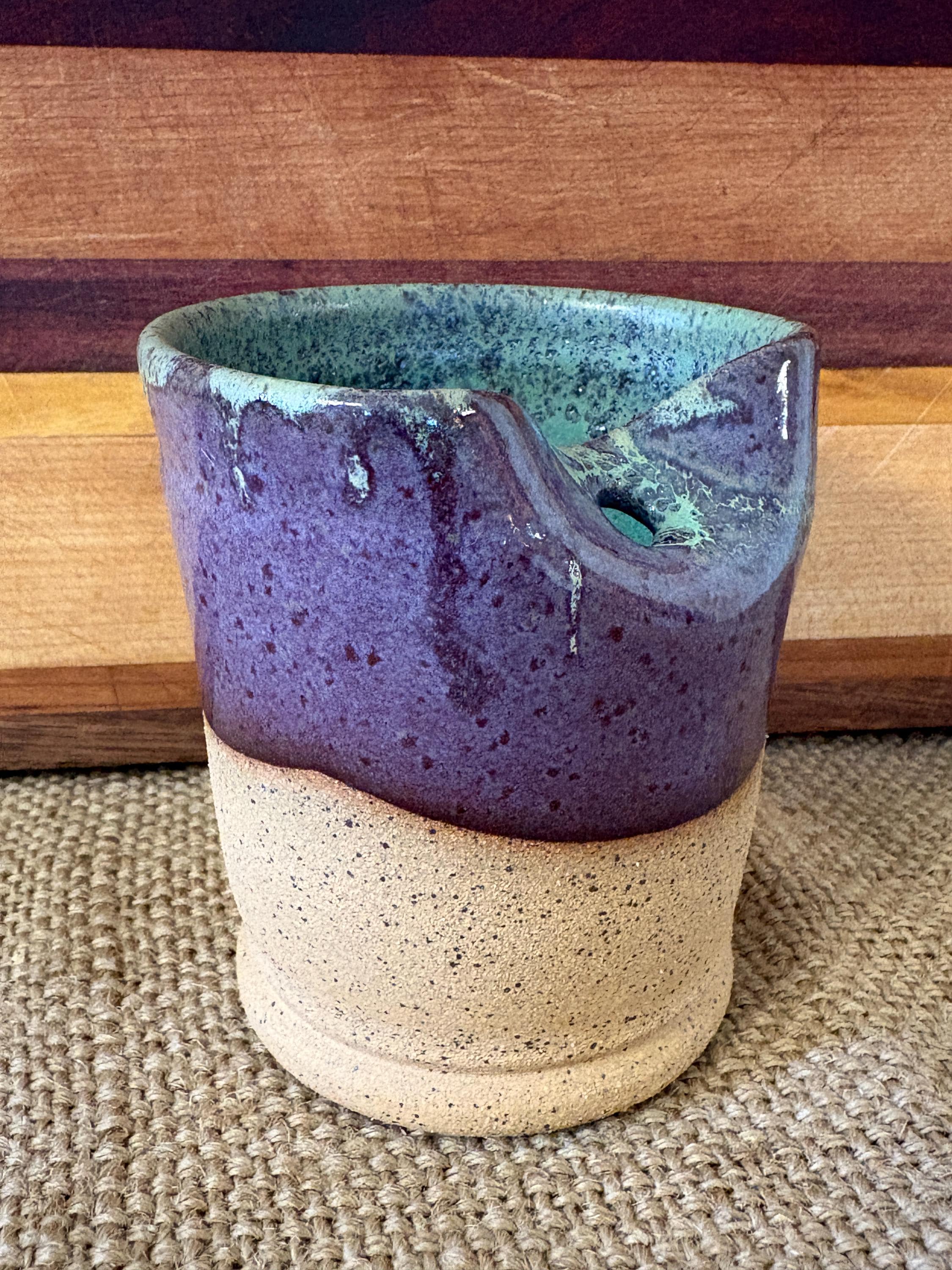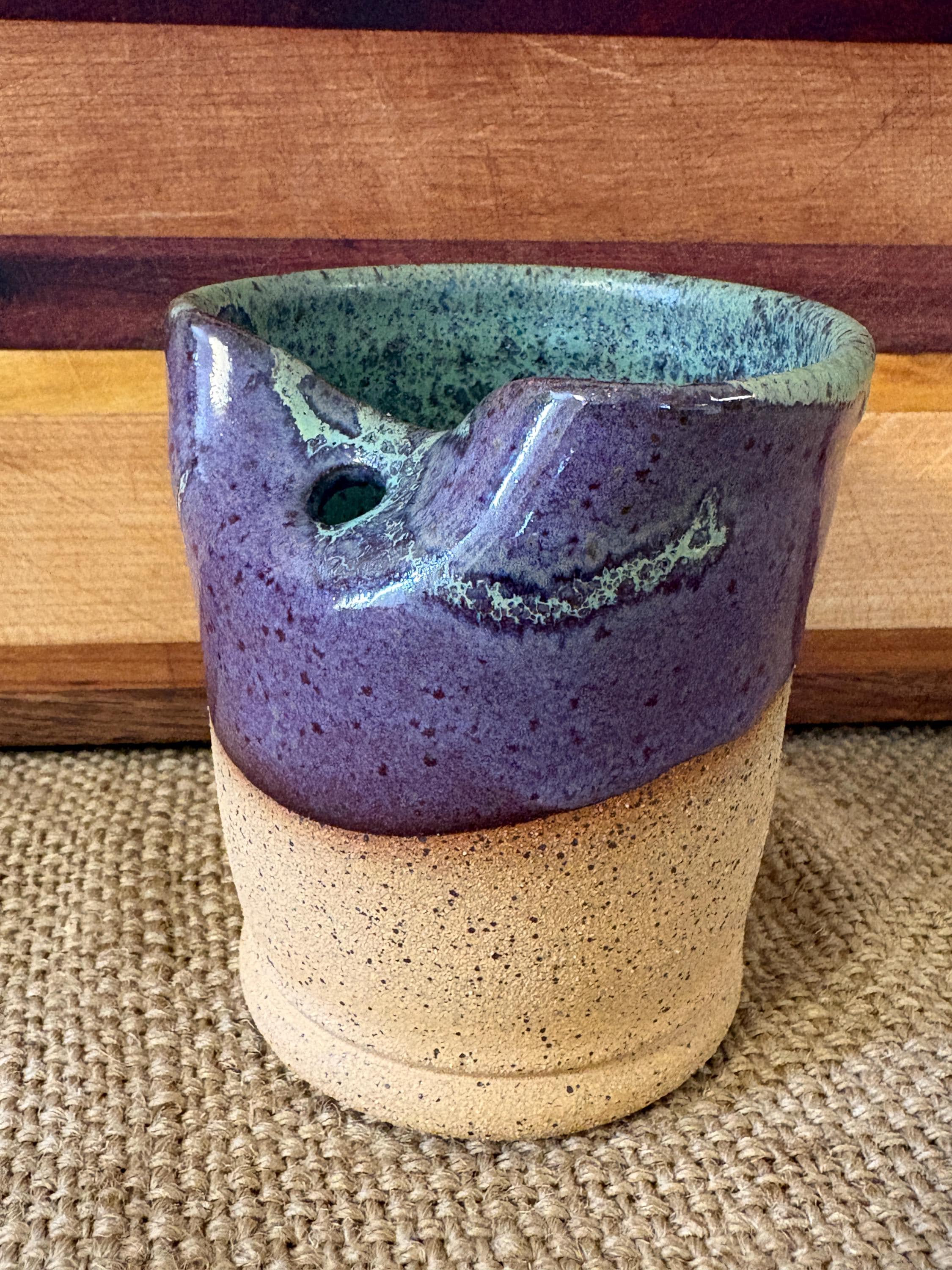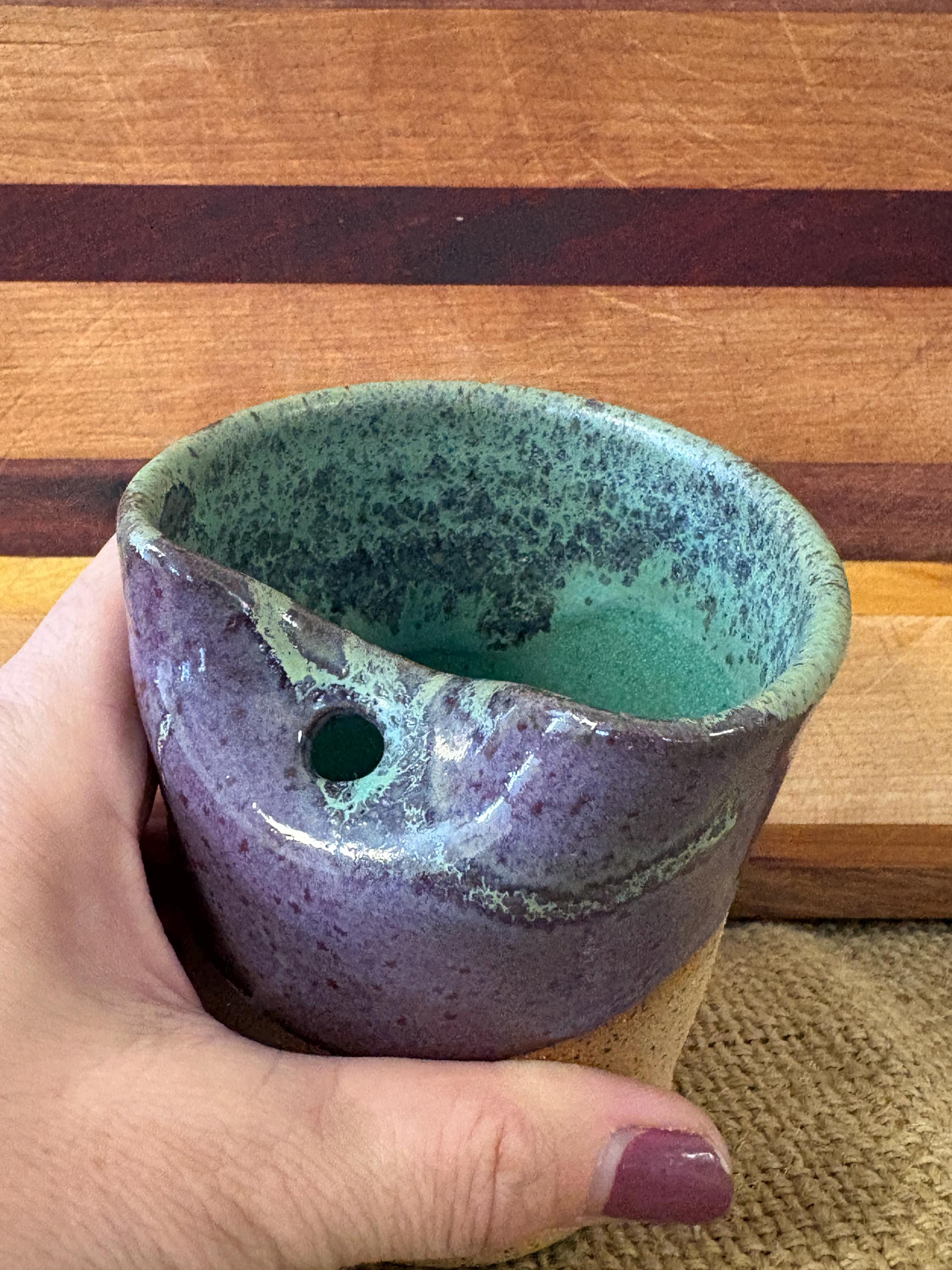Small tumbler with a hole for a straw.